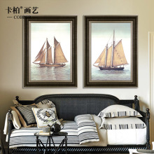 一帆风顺 美式风格客厅沙发背景墙装饰画玄关壁画欧式帆船风景画