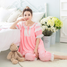 2016韩版夏季睡衣纯棉薄款女夏公主款短袖七分套装夏天可爱家居服