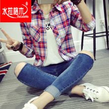 青少年2016春装新款韩版少女长袖格子衬衫初高中学生休闲打底衬衣