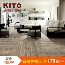 特权订金 金意陶瓷砖地砖 仿实木纹砖 老船木178元/㎡
