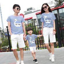 亲子装春装2017新款潮母女套装一家三口全家装母子装夏装条纹时尚