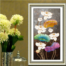 新款现代艺术钻石画手绘彩色荷花5D贴钻十字绣水晶钻竖款客厅卧室