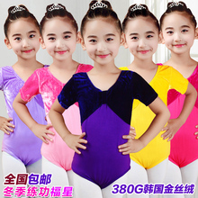 儿童舞蹈服装夏季练功服民族女童芭蕾舞服短袖演出服金丝绒连体服
