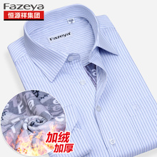 恒源祥彩羊保暖衬衫男加绒加厚中年男士长袖衬衣条纹商务休闲冬装