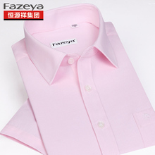 恒源祥彩羊男士衬衫短袖商务休闲加肥加大码结婚礼服新郎衬衣粉色