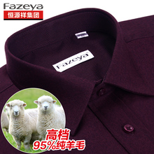 恒源祥彩羊高档羊毛衬衫男长袖春季纯色衬衣商务休闲男士羊毛衬衫