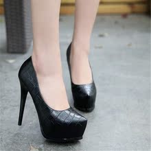 潮韩版春季新款高跟鞋细跟浅口女鞋防水台职业工作鞋皮鞋高跟单鞋