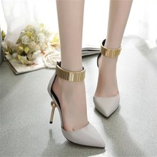 金色百搭高跟鞋春夏2017新款韩版气质尖头一字扣鞋女亮片细跟鞋子