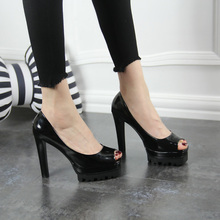 鱼嘴女鞋超高跟2017夏季新款亮皮浅口时尚百搭粗跟防水台单鞋凉鞋