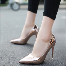 2017夏新款女鞋时尚宴会漆皮香槟色浅口尖头银色高跟鞋女细跟单鞋