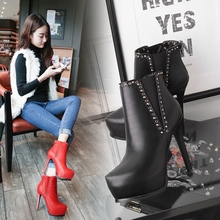 韩版新品2016秋冬新款女靴细跟超高跟靴防水台女短靴及踝靴子女鞋