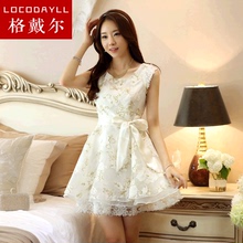 欧根纱2016连衣裙夏装韩版新款女装无袖蕾丝修身大码蓬蓬仙女长裙