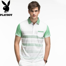 Playboy花花公子 2017男装夏新品条纹时尚休闲翻领短袖t恤Polo衫