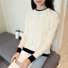 2017韩版春季新款女装通勤套头长袖圆领数字潮款针织衫New