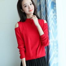 2017春季韩版潮露肩针织衫修身圆领套头长袖打底衫夏季女学生新品