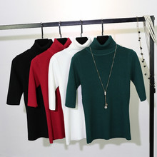 韩版春秋新款女式中袖修身半袖高领打底衫针织衫纯色毛衣上衣包邮