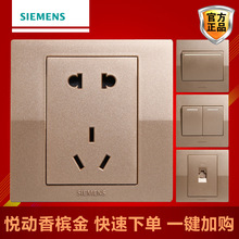 西门子开关插座86型悦动香槟金二三插家用电源五孔插座一键加购