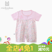 米妮宝宝婴儿衣服夏季竹纤维短袖哈衣爬服男女宝宝外出连体衣夏装