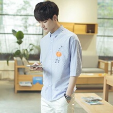 腓尼基 日系衬衫男亚麻七分袖韩版修身夏季短袖休闲棉麻白衬衣潮