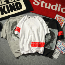 韩版原宿BF风ulzzang宽松圆领套头刺绣短袖情侣装春夏季T恤男女潮