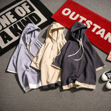 夏季日系原创拼色原宿风BF宽松假两件男女连帽衫潮牌学生短袖T恤