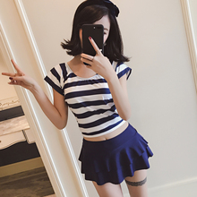 韩国分体游泳衣女 三件套钢托小胸比基尼泳衣 裙式平角泳装包邮