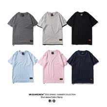 原创潮牌 日系经典百搭款假两件纯色半袖t恤休闲圆领纯棉男女短袖