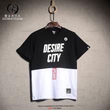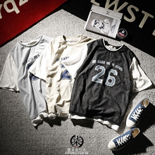 欧美街头潮牌嘻哈篮球服短袖体恤 日系原宿风印花假两件情侣T恤男
