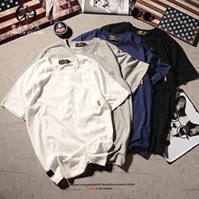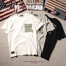 夏季 美式街头潮牌工装口袋短袖T恤 原宿风日系复古休闲短袖tee男