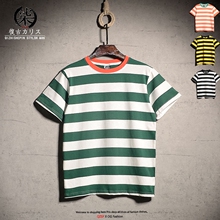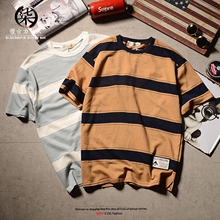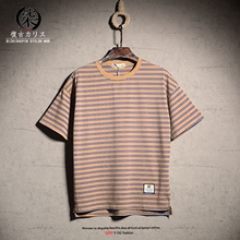 夏季 原创日系复古怀旧条纹T恤 学院风青少年潮牌宽松短袖T恤男装