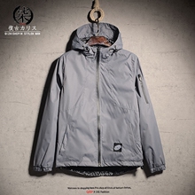 原创设计 春季日系复古潮牌工装连帽夹克外套 原宿青年冲锋上衣男