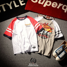 原创 2017夏季美式潮牌街头短袖tee 拼色袖汽车印花原宿港风T恤男
