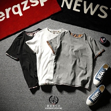 夏季 日系复古短袖 原宿假两件T恤 韩版学院民族风修身短袖男潮流