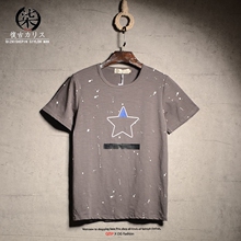 五角星印花 日系复古潮牌短袖T恤 原宿风青年韩版男士休闲半袖tee