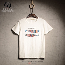 夏原创日系复古潮男水洗短袖T恤韩版原宿风印花青少年修身半袖tee