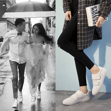 王菲安以轩结婚同款鞋真皮厚底小白鞋圆头透气魔术贴单鞋板鞋女潮