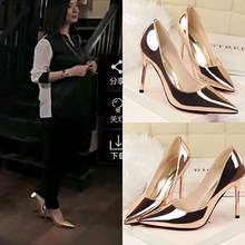 老爸当家权薇蒋欣同款鞋金色细跟香港长腿高跟鞋尖头单鞋女鞋婚鞋