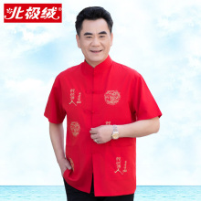 北极绒中老年唐装男短袖爸爸装爷爷夏装中国风汉服男老人唐装衬衫