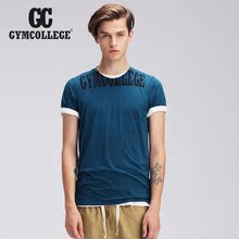 GYMCOLLEGE2016夏季新款男T恤短袖圆领字母印花修身短袖t恤男青年