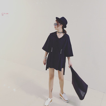 superjoy 韩国街头帅气宽松中长款卫衣中袖连衣裙大口袋连帽卫衣