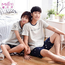 蜜尔伊2017情侣睡衣薄款夏季短袖纯棉家居服套装男女全棉短裤