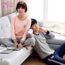 蜜尔伊春季纯棉情侣睡衣居家服女士套装睡衣女秋全棉长袖家居服男
