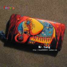 包邮2017新款彩绘复古手拿手绘涂鸦男女士牛皮超大长款真皮钱包