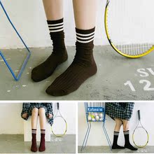 堆堆袜子 女韩国潮条纹袜中筒袜韩版日系复古民族风二三条杠长袜