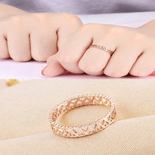 韩国正品韩版时尚镂空爱心戒指环女18K玫瑰金尾戒装饰品生日礼物