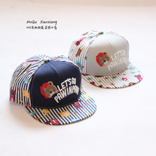 春季新款儿童刺绣熊鸭舌帽条纹印花棒球帽男女宝宝出游遮阳帽子潮