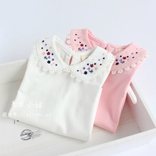 【天天特价】女宝宝打底衫翻领长袖衬衫百搭蕾丝开衫T恤春款纯棉