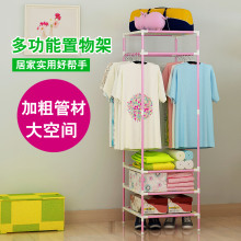 锦盛卧室衣架落地衣帽架多功能衣服创意置物架加固两层挂衣架特价