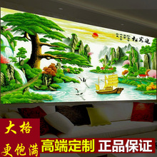 蒙娜丽莎大格4股线绣十字绣迎客松新款客厅山水画风景流水生财9ct