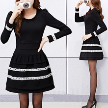 2016韩版女士秋装新款气质修身蕾丝长袖加厚连衣裙